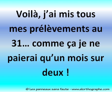 Voilà, j’ai mis tous mes prélèvements au 31… comme ça je ne paierai qu’un mois sur deux !