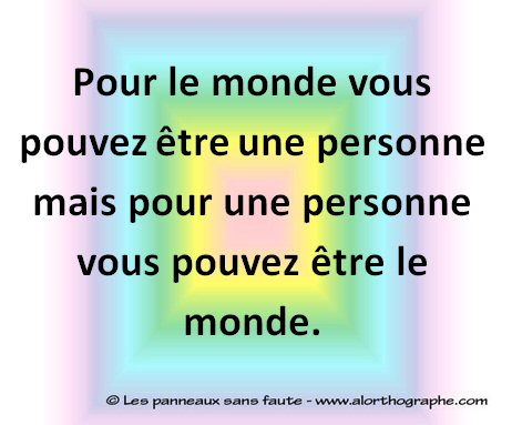 Pour le monde vous pouvez être une personne mais pour une personne vous pouvez être le monde.